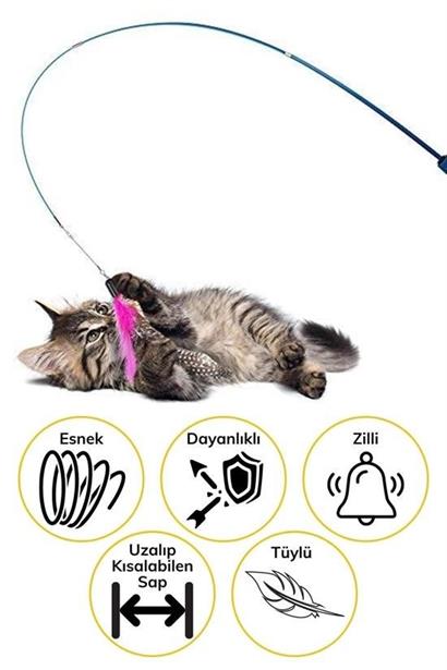 - Teleskopik Tüylü ve Çanlı Ayarlanabilir Esneyen Eğlenceli Kedi Oyun Oltası renkli ve parlak yapısı ile minik dostunuzun dikkatini çekerek temel avlanma içgüdülerini harekete geçirmeye yardımcı olacaktır