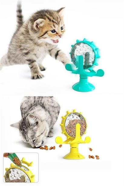 BUFFER® Vantuzlu Zilli İnteraktif Dönebilen Mama Kaplı Renkli Değirmenli Eğlenceli Eğitici Kedi Oyuncağı